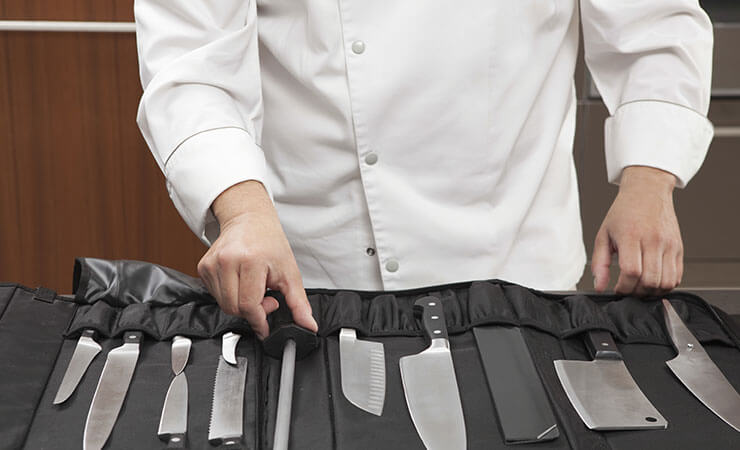The first step to finding a chef’s knife that works for you is to search out a cutlery or cookware store (rather than an online or mail-order source) with a wide selection of sample knives that you can hold or, even better, maneuver on a cutting surface. “You can’t buy a knife off a peg board. You need to feel it and talk to someone who can guide you,” says Jacob Maurer, a cutlery buyer for Sur La Table, which lets customers chop food with their knife samples. Seek out salespeople who can lead you to a knife that fits; don’t fall prey to those who tell you which knife to buy.
